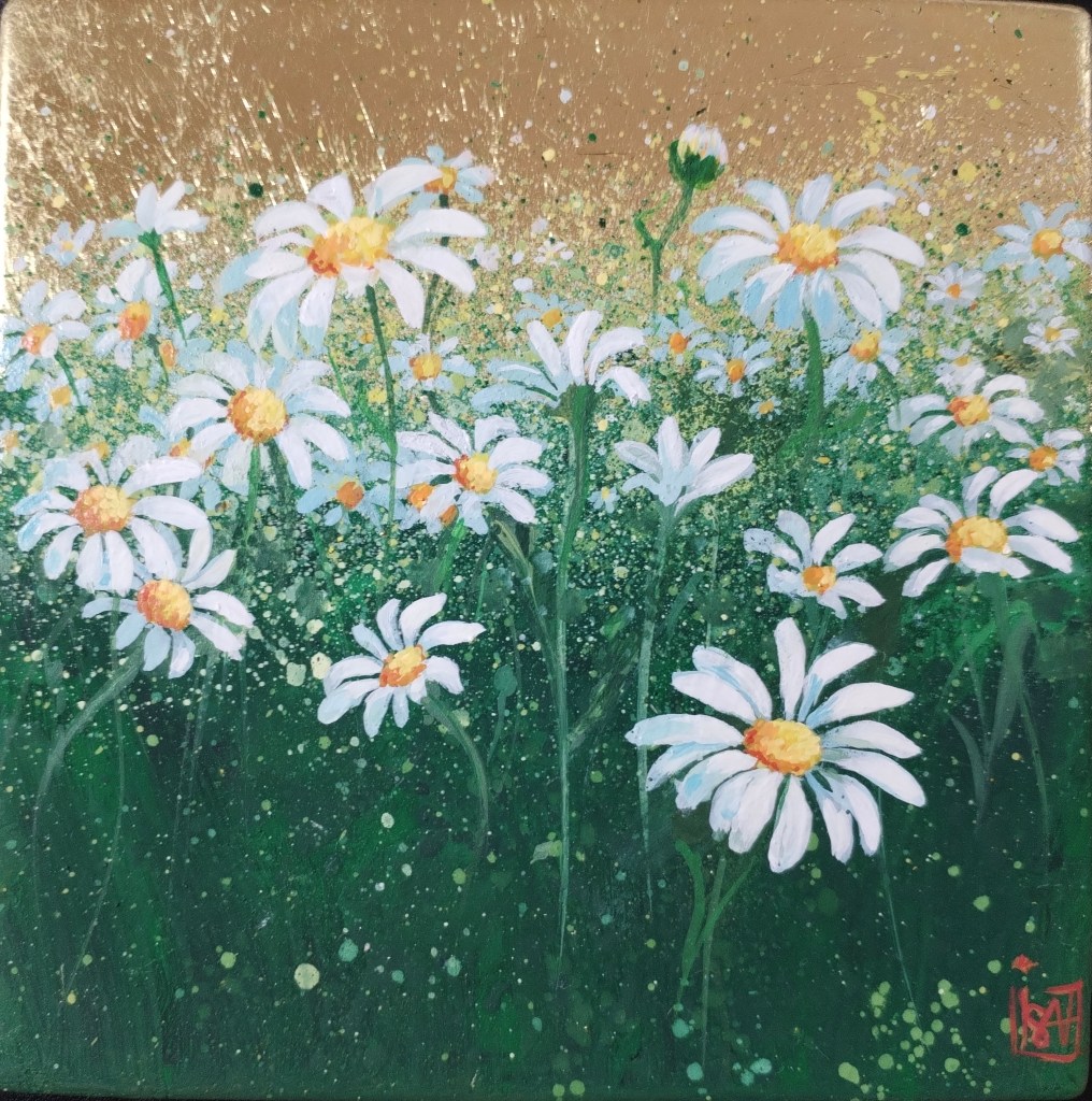 DAISIES (DISPONIBLE) DAISIES, 20×20, LAQUE SUR BOIS, 2024 Sur le même thème Publié dans Laques, Laques Récentes
