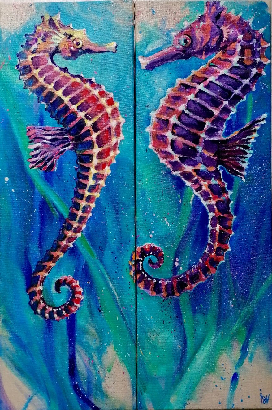 Hippocampes Diptyque Hippocampes, Huile sur toile de lin, 40×60, 2020 Disponible Sur le même thème Publié dans Mer