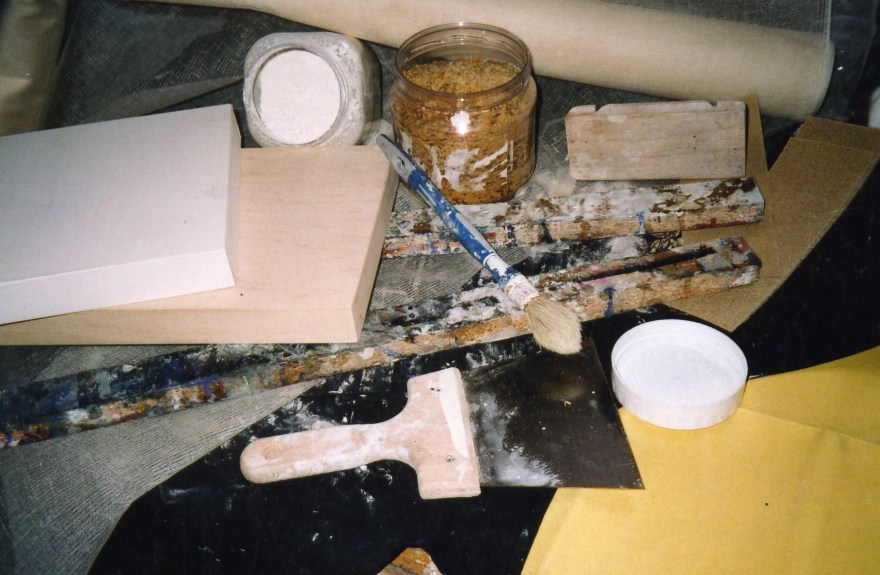 La laque se fait sur contreplaqué marin multiplie de 15 mm d’épaisseur. Il faut le poncer grossièrement pour rayer la surface au papier de verre