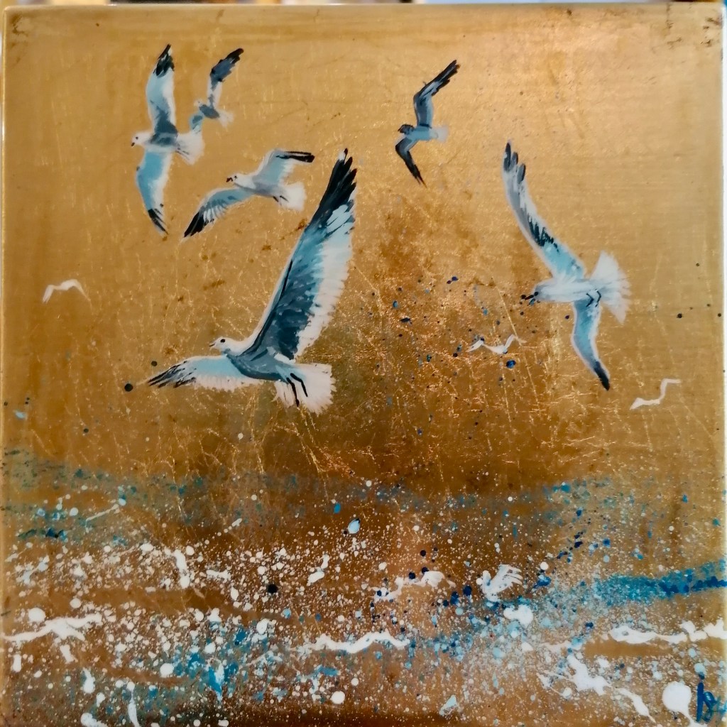 Mini Mouettes (VENDU) Mini Mouettes, laque sur bois, 15×15, 2021 Sur le même thème Publié dans Laques, Laques Récentes, Mer