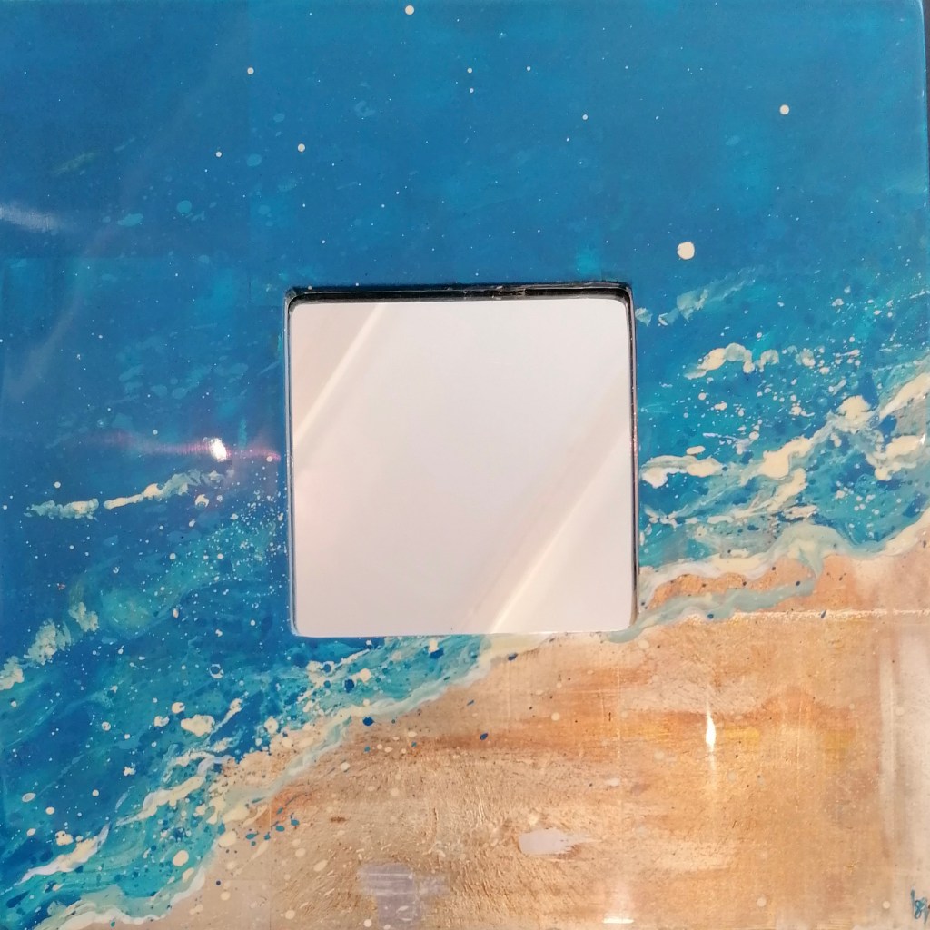 Miroir Abstraction balnéaire (VENDU) Miroir Abstraction balnéaire, laque sur bois et miroir, 23×23, 2021 Sur le même thème Publié dans Autres supports