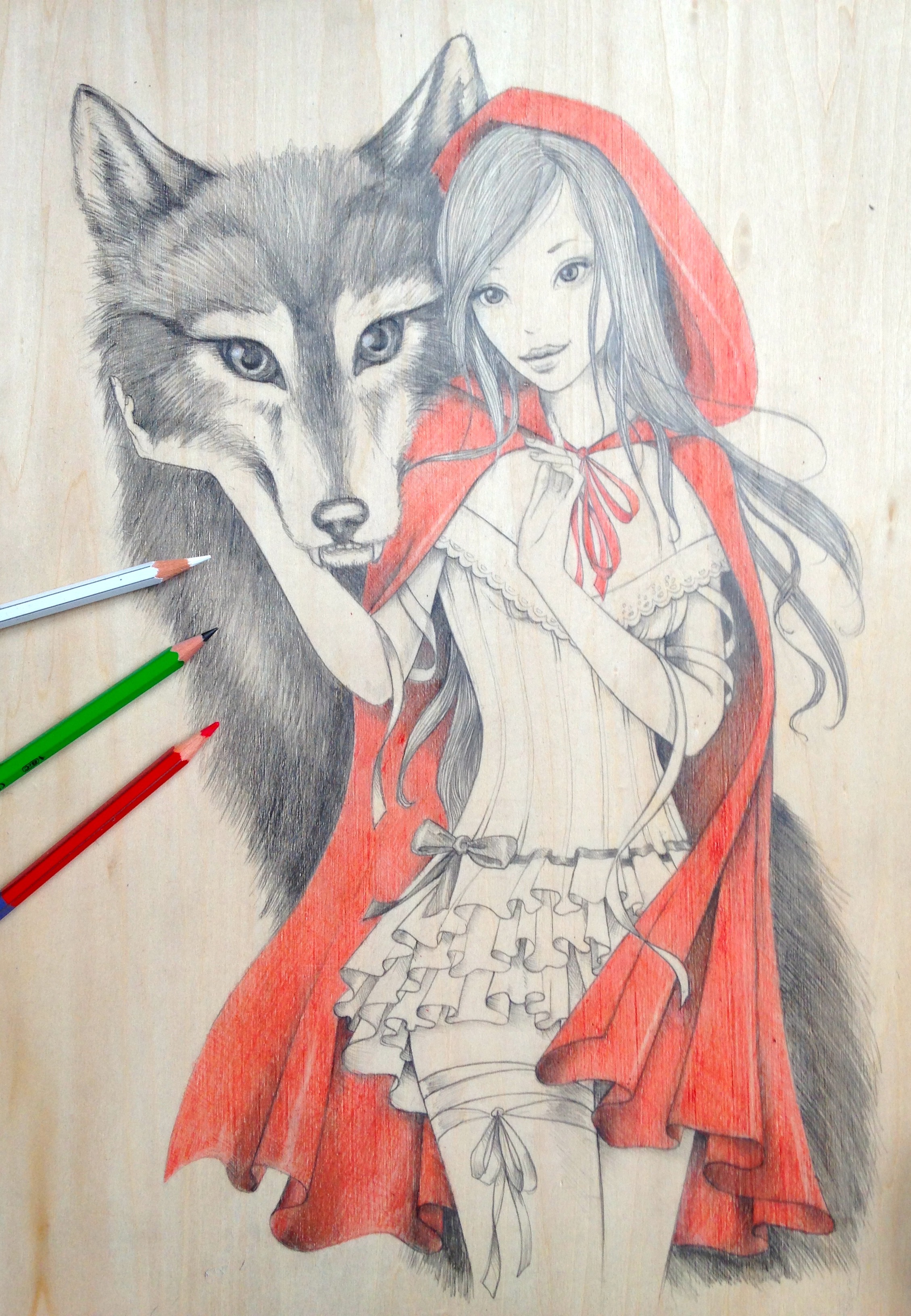 Petit Chaperon Rouge Petit Chaperon Rouge, Crayon noir et de couleurs sur bois, 2014 Sur le même thème Publié dans Dessins