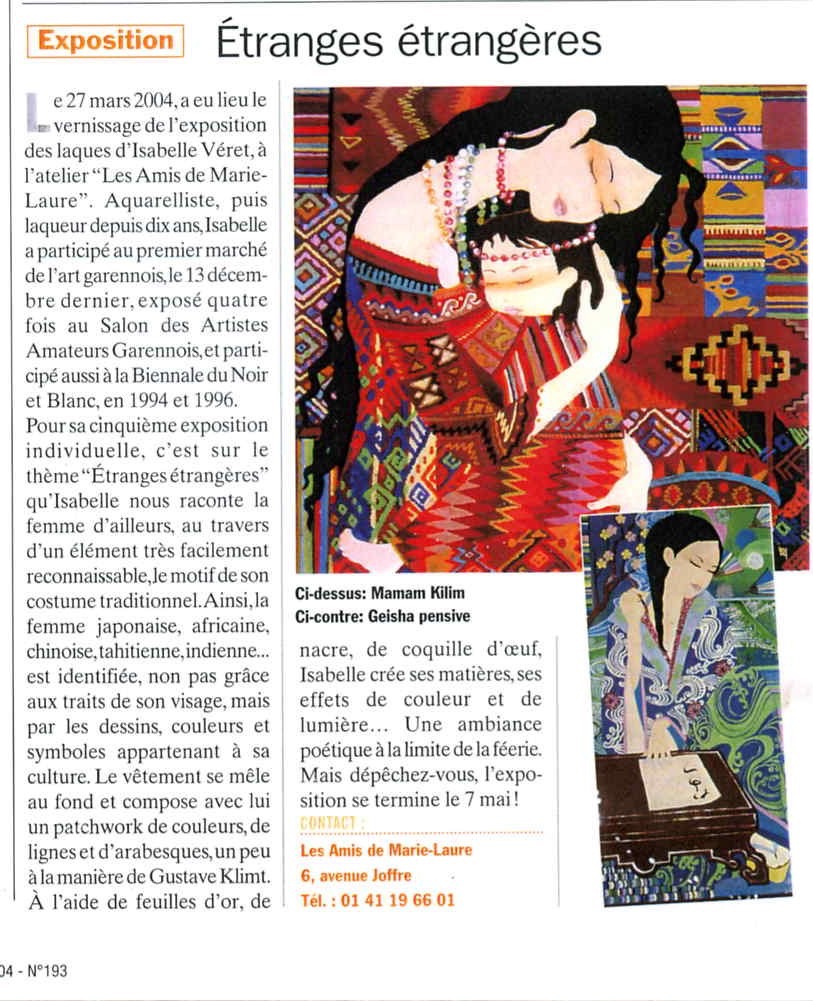 Article dans Cadre et Décoration – Des Cadres en or Laqués – 2003